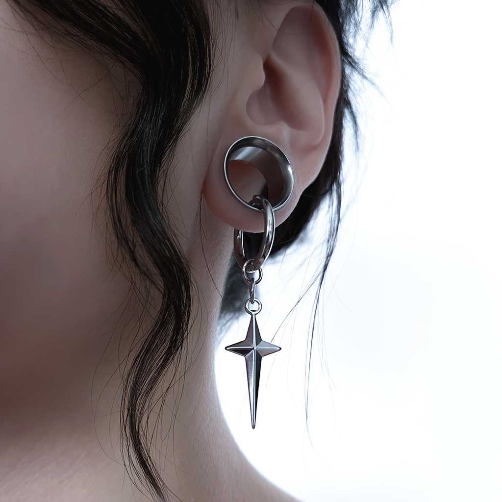 Crux is a four-point star ear tunnel charm made of stainless steel. It is ultra-lightweight, ensuring maximum comfort. Made to fit tunnels from 5mm and up.